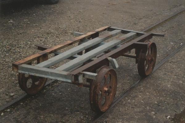 広場に放置してあった貨車(台車?).線路に乗せてみた.一人で移動できる程軽い.