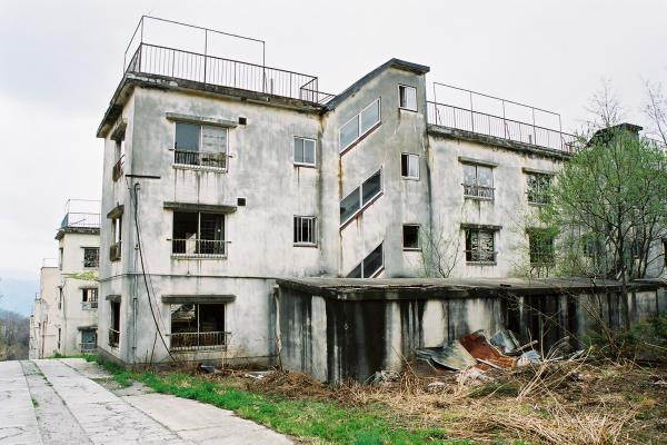 こちらも雪か何かで崩壊した事業所の建物.広範囲に崩壊していた.