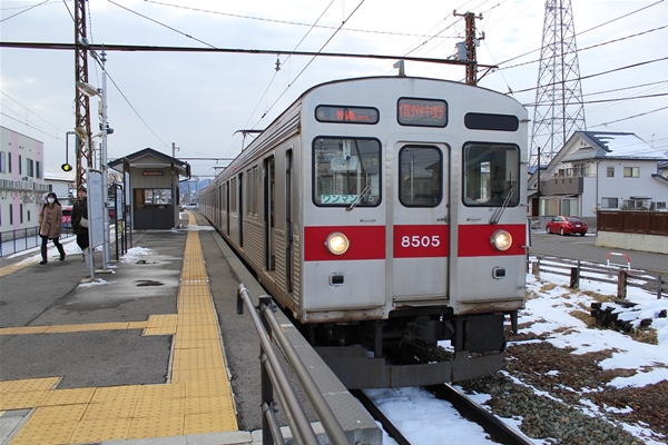 善光寺下はその名の通り善光寺の山の裾にあり都市の中の地下鉄そのままである.