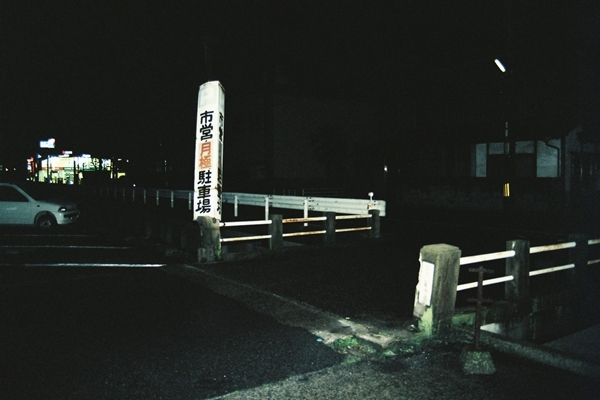 玉野市電気鉄道(岡山県玉野市) 1994年3月19日/キヤノンEOSkissX3 1972年に廃止となった玉野市営電鉄.廃止からこの時点で22年,川の上に造られた駐車場にその痕跡を残す. 写真をクリックすると拡大します.
